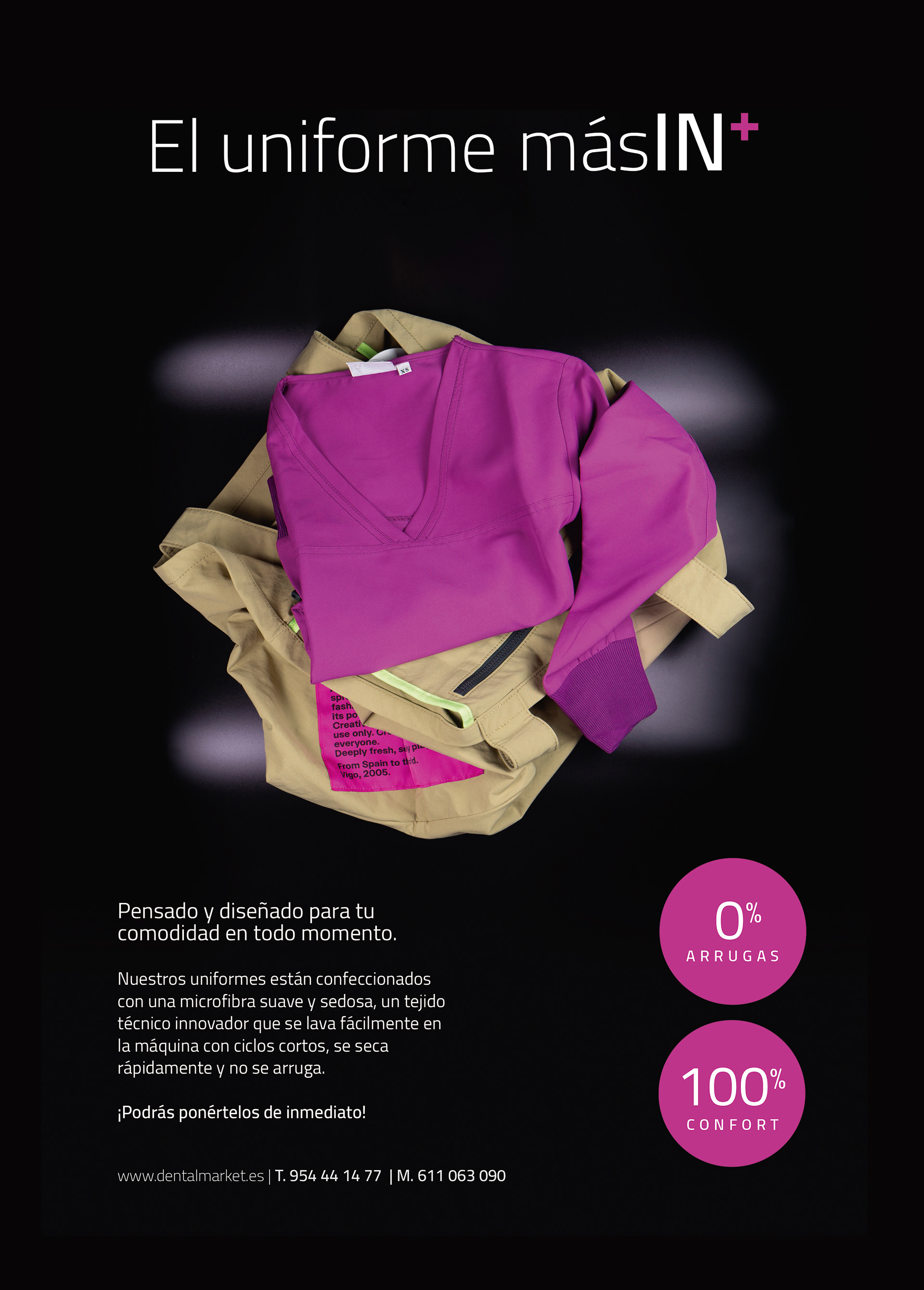 Diseño de logomarca, piezas promocionales y fotografía de productos para la línea de uniformes sanitarios Dentalmarket .