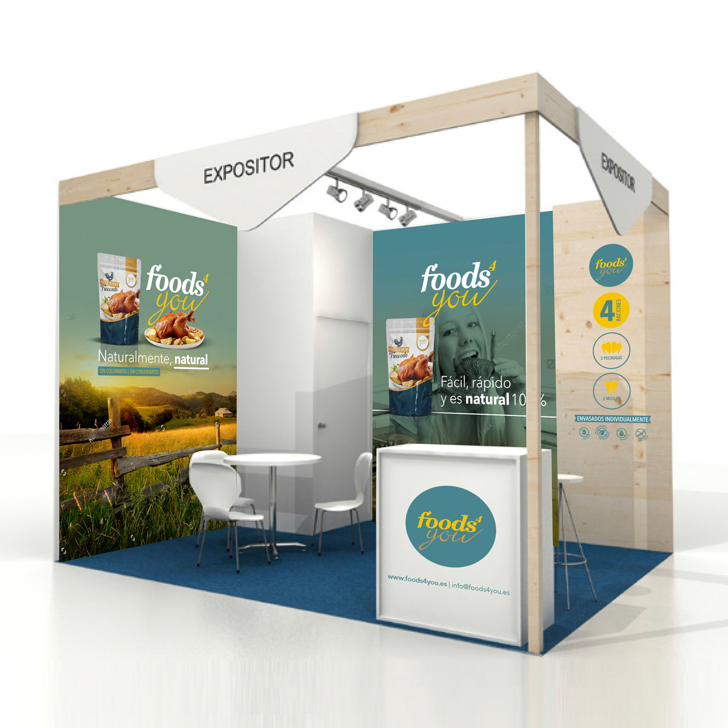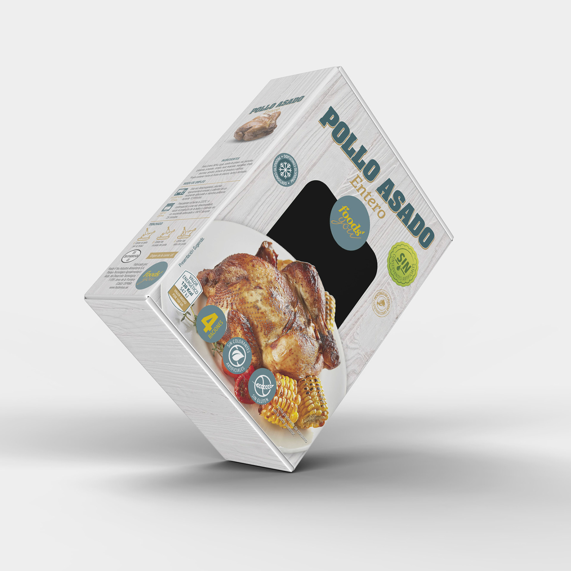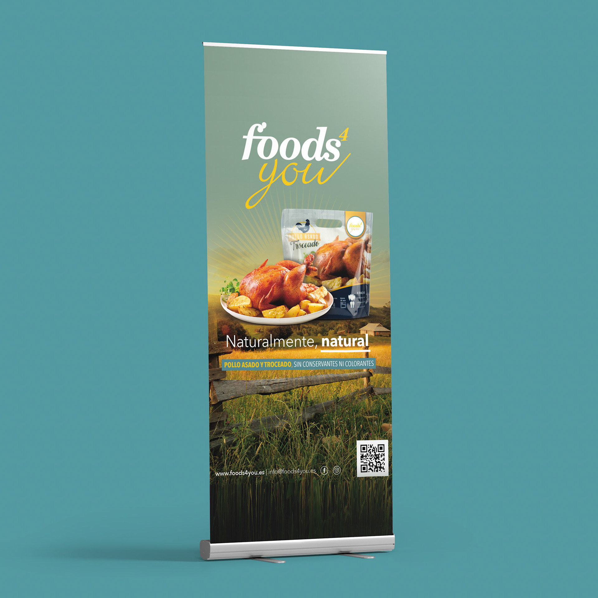 Diseño de imagen corporativa para la marca Food4you de alimentación. Desarrollo de packaging para diferentes productos.