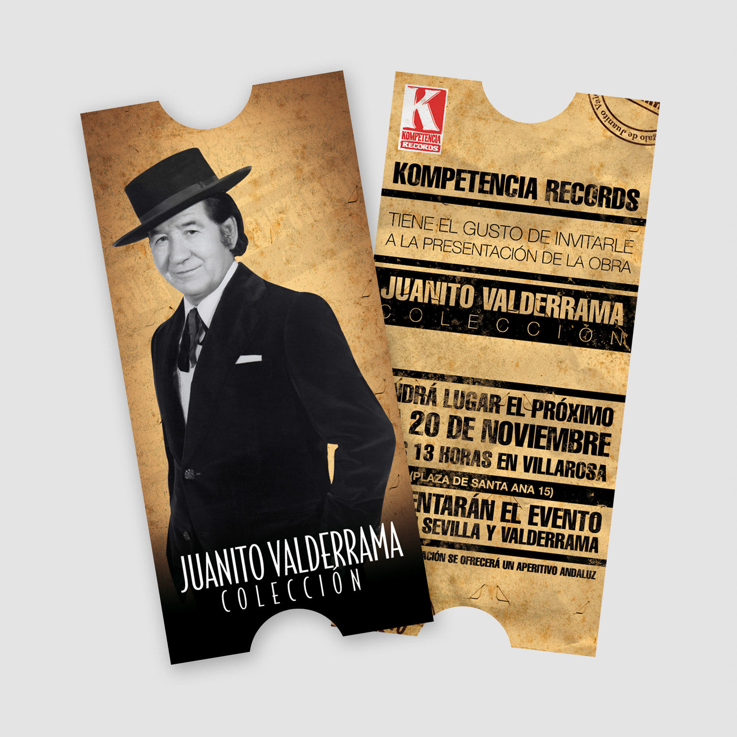 Creatividad, diseño y desarrollo de piezas para el recopilatorio de Juanito Valderrama. Diseño de portadas para DVD y CD, diseño y desarrollo de packaging contenedor, invitaciones de evento presentación así como el PLV de venta El Corte Ingles.